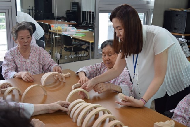 그랜드자연요양병원에서는 노인생활과학연구소가 개발한 다양한 노인교구를 노인용 교구 활용지도사를 통해 입원하고 있는 어르신들께 적용하여 인지개선, 공간지각, 소통도구로 활용하고 있다.